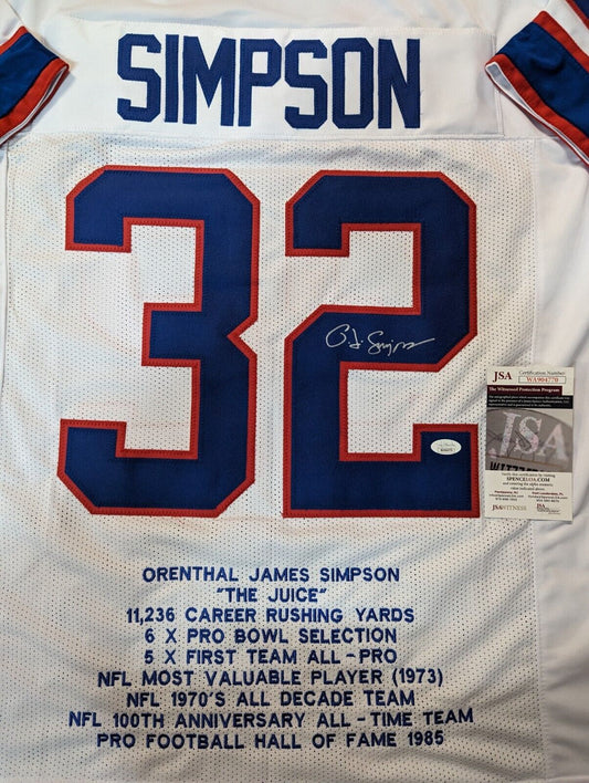 Buffalo Bills Oj Simpson Autographed Signed Stat Jersey Jsa Coa