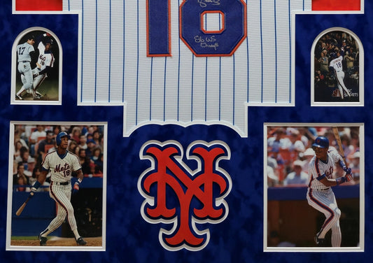 Suede Framed N.Y. Mets Darryl Strawberry Autographed Inscribed Jersey Jsa Coa