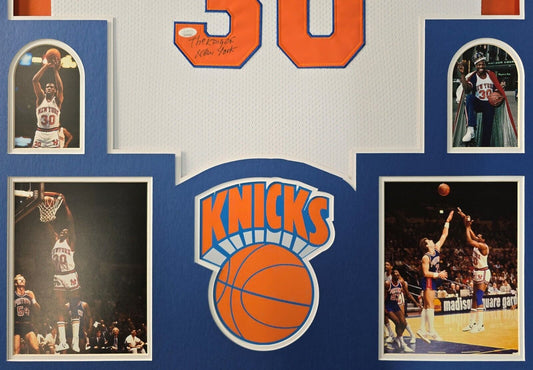 Framed New York Knicks Bernard King Autographed 2X Inscribed Jersey Jsa Coa