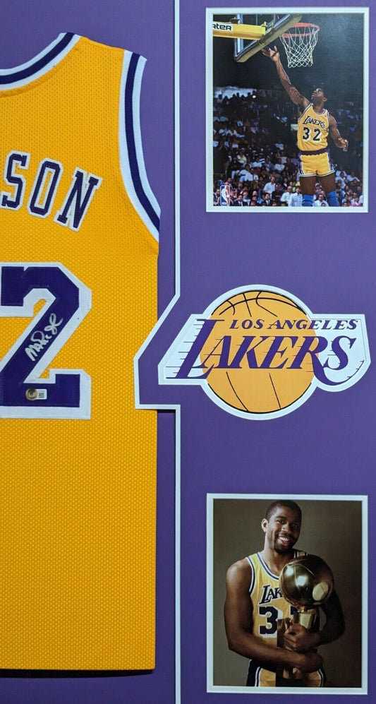 Framed L.A. Lakers Magic Johnson Autographed Signed Jersey Beckett Holo