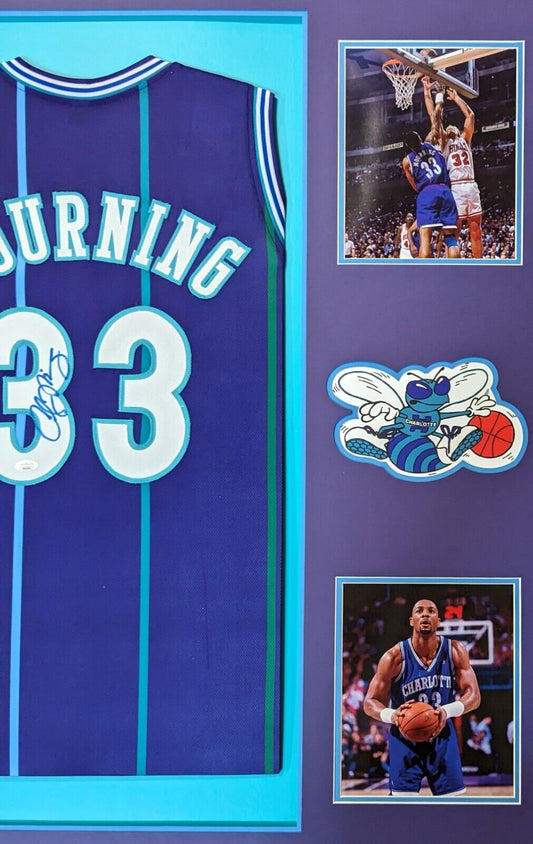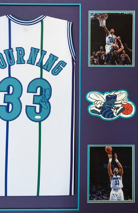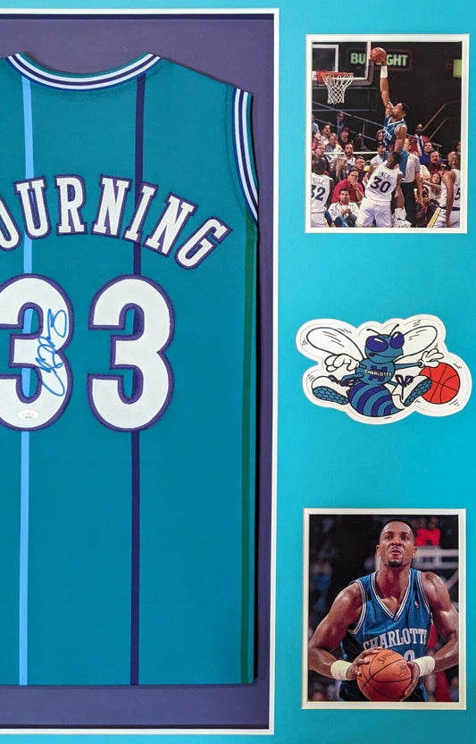 Framed Charlotte Hornets Alonzo Mourning Signed Jersey Jsa Coa