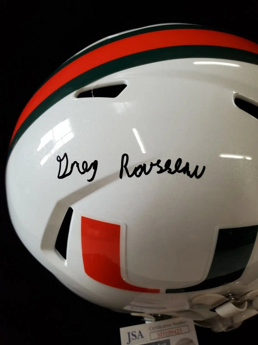 Greg Rousseau Signed Miami Hurricanes Full Size Replica Helmet Jsa Coa