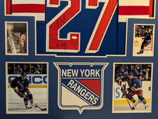 Suede Framed N.Y. Rangers Mike Richter Autographed 4X Inscribed Jersey Jsa Coa