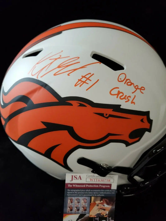 Kj Hamler Autographed Orange Signed Denver Broncos Lunar Mini Helmet Jsa Coa