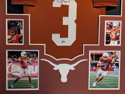 Framed Texas Longhorns Quinn Ewers Autograph Signed Jersey Beckett Holo
