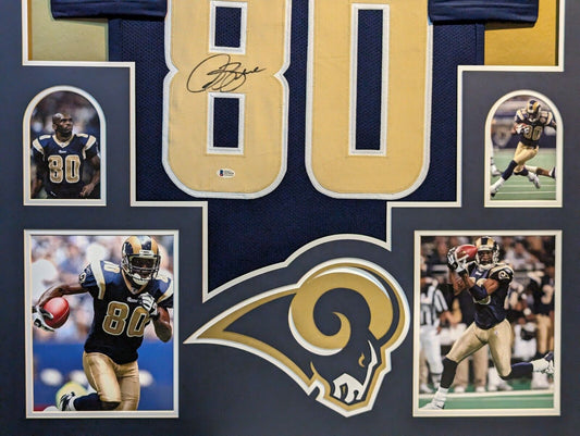 Framed St. Louis Rams Isaac Bruce Autographed Signed Jersey Beckett Coa
