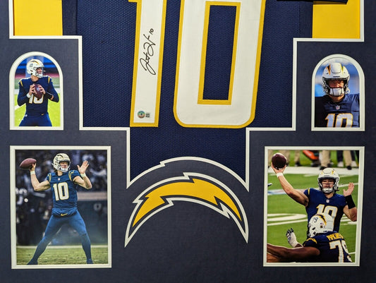 Framed San Diego Chargers Justin Herbert Autographed Signed Jersey Beckett Holo