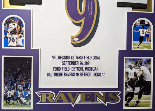 Framed Baltimore Ravens Justin Tucker Autographed Signed Stat Jersey Jsa Coa