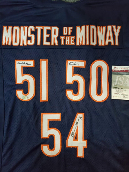 Chicago Bears 3X Signed Jersey Butkus Singletary Urlacher Jsa Coa