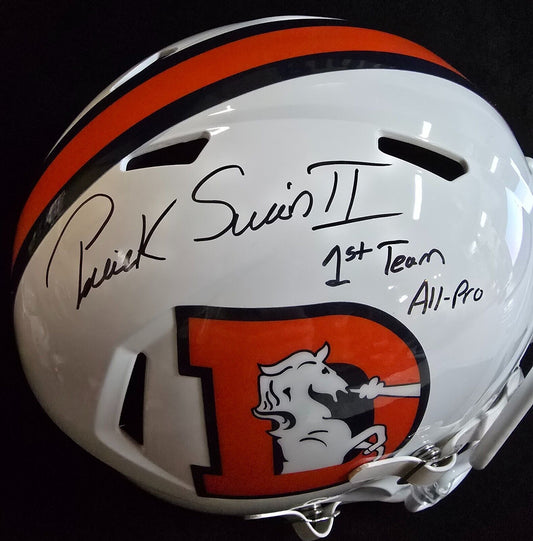 Denver Broncos Pat Surtain Ii Signed 2X Insc Replica Full Size Helmet Beckett