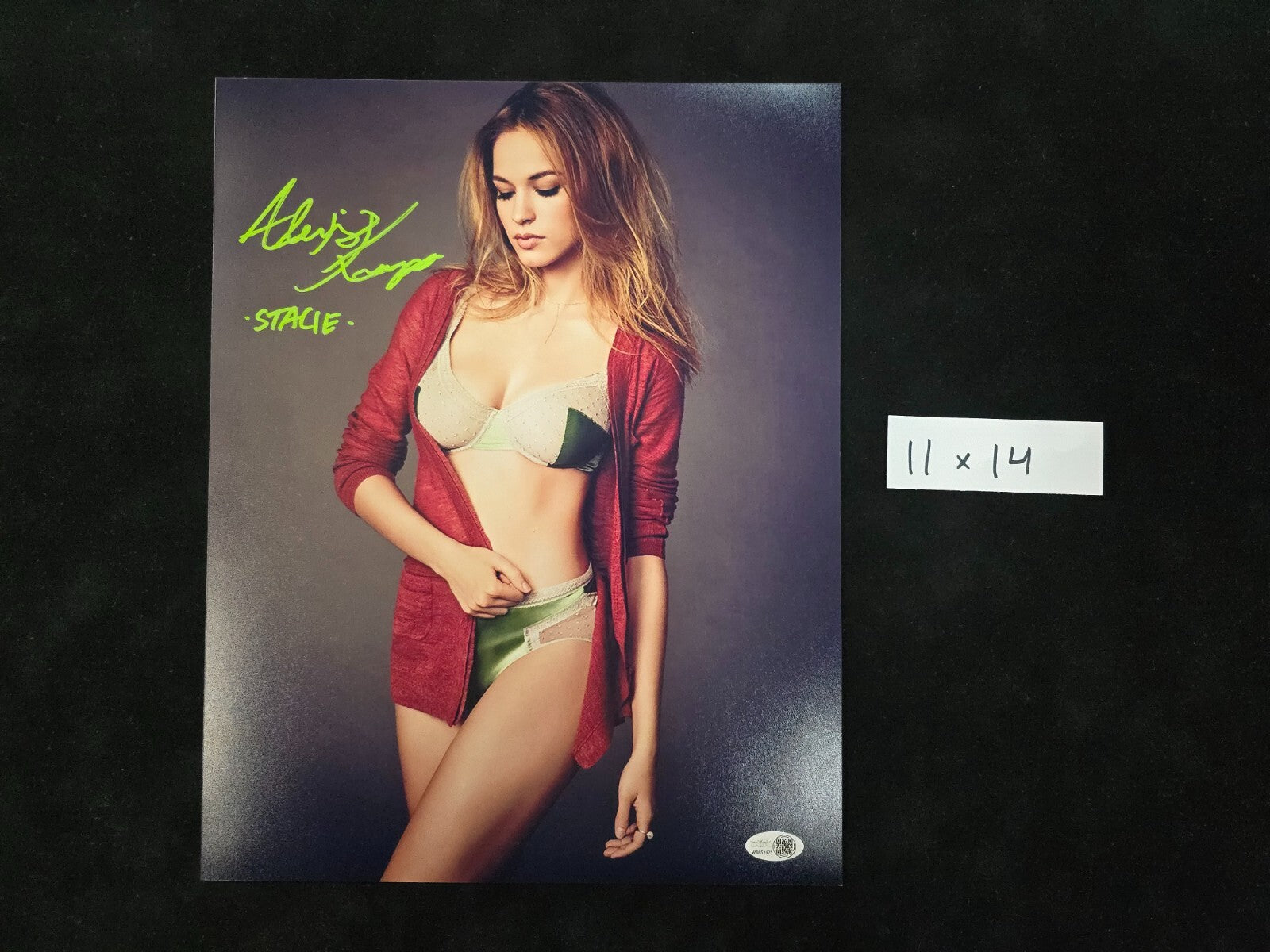 Capture a piece of the big screen with this authentic 11x14 photograph signed by Alexis Knapp, best known for her role in "Pitch Perfect." Each autograph is verified by James Spence (JSA) for authenticity, ensuring that you own an original piece of movie memorabilia. This piece is not just a photo; it's a memento that celebrates the spirit of cinema and the talent of its stars. Whether for your collection or as a unique gift, this signed photograph is a testament to the enduring legacy of the movie industry.