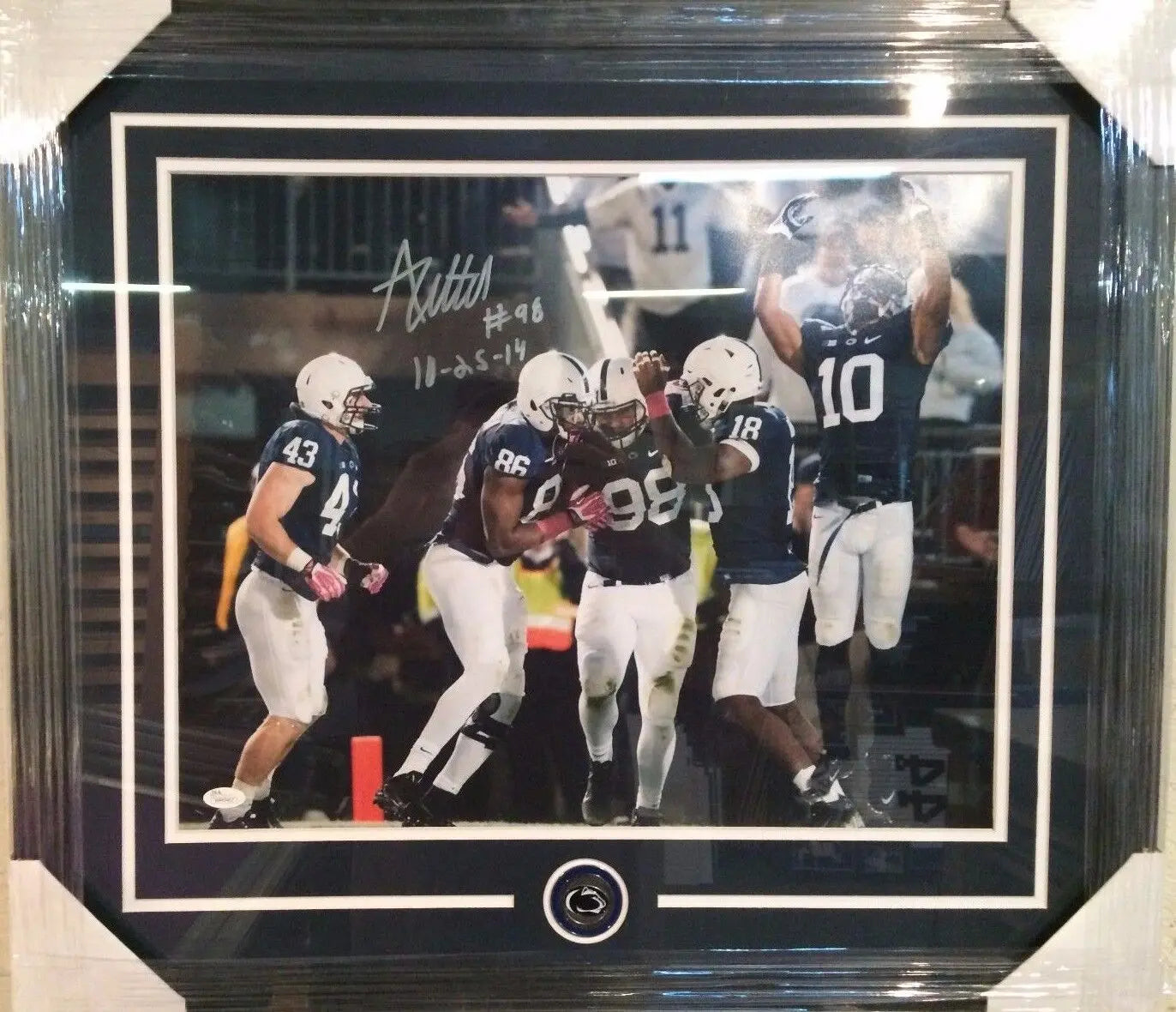 Custom Framed Anthony Zettel hand signed inscribed "10-25-14" Penn State 16X20.