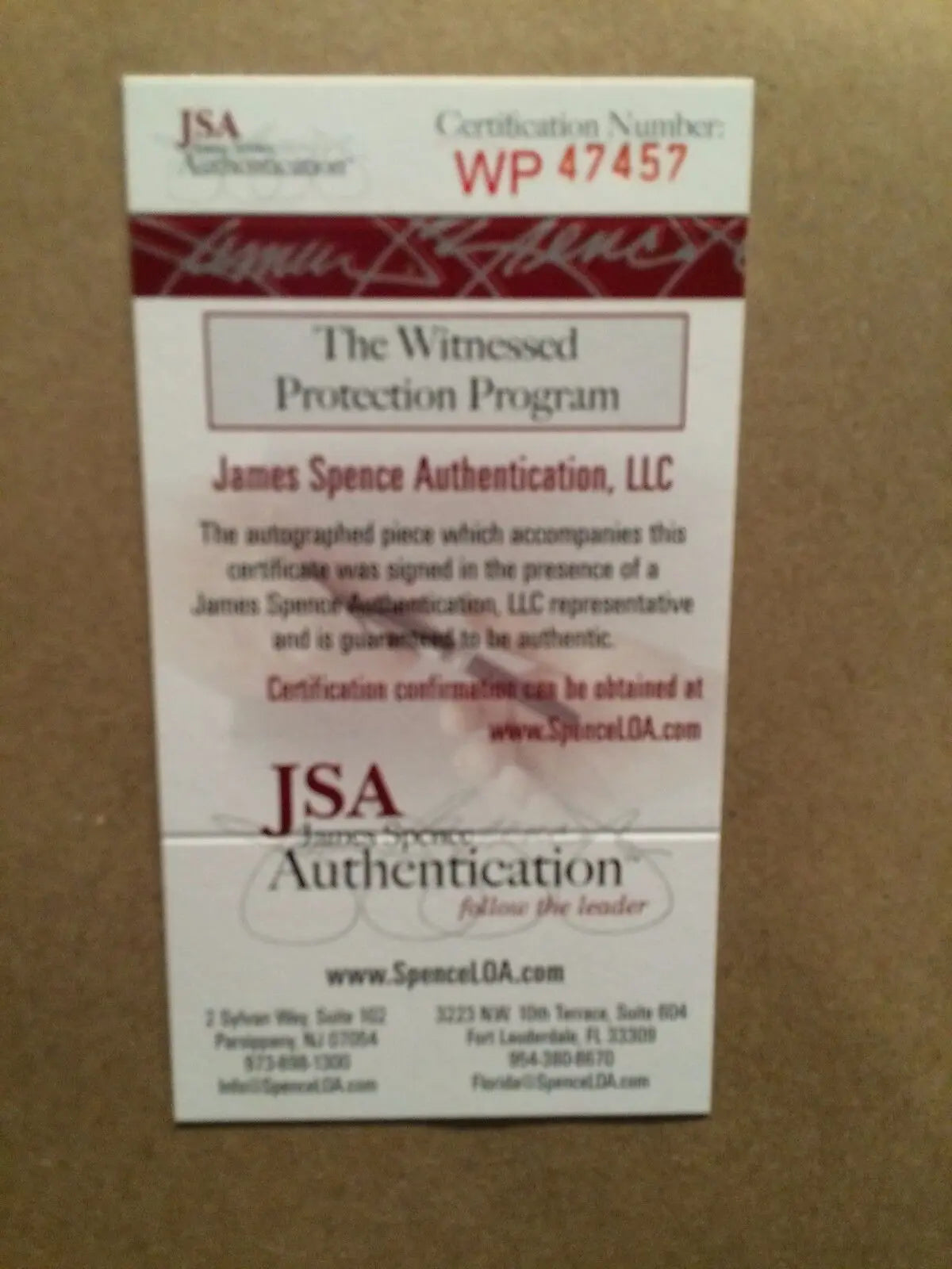 The authentication is from JSA. This signature is authenticated by a representative of JSA! 100% AUTHENTIC!!! It is a great item and a must for all great sports fans!