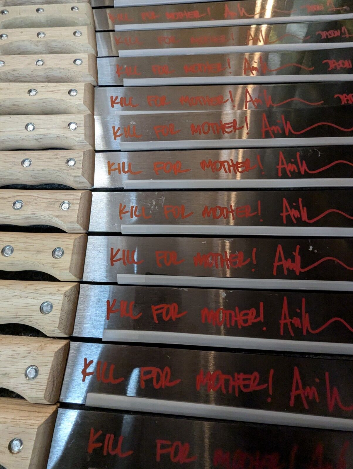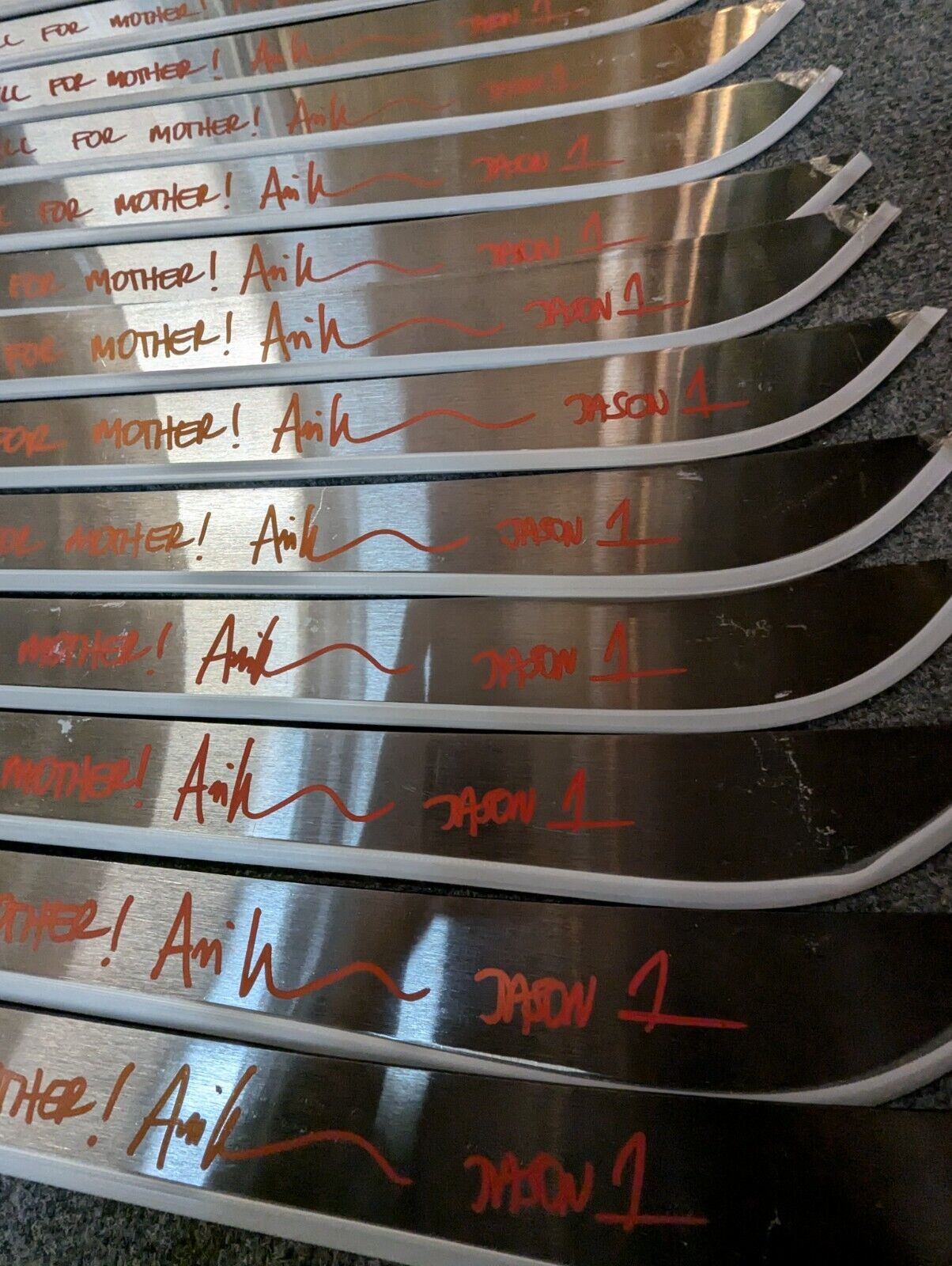 JSA Hologram and COA - Stock photo used, will receive similar quality, signature style and location - Listing is for a SINGLE machete photo of the entire stock to show variation in handle colors