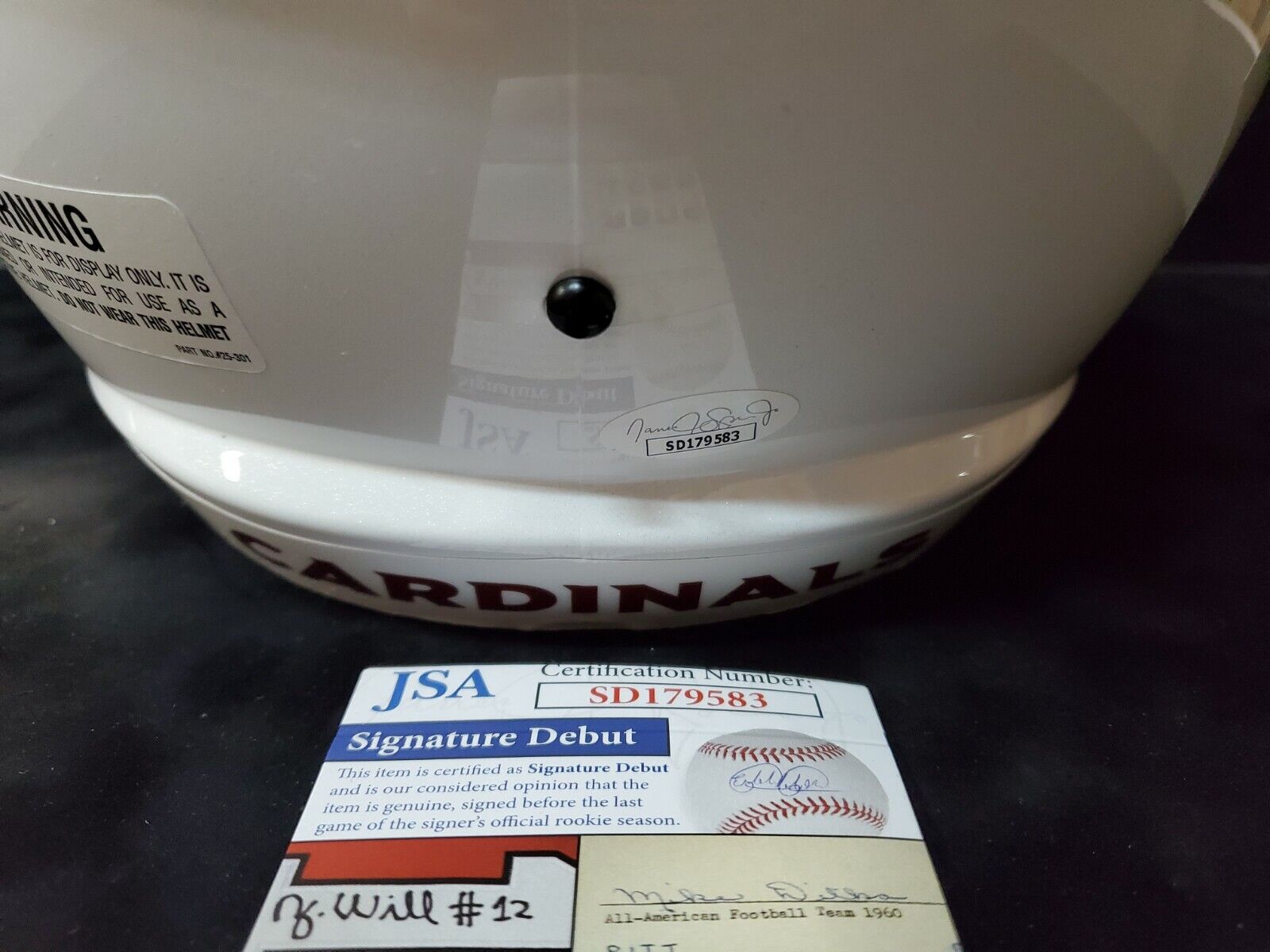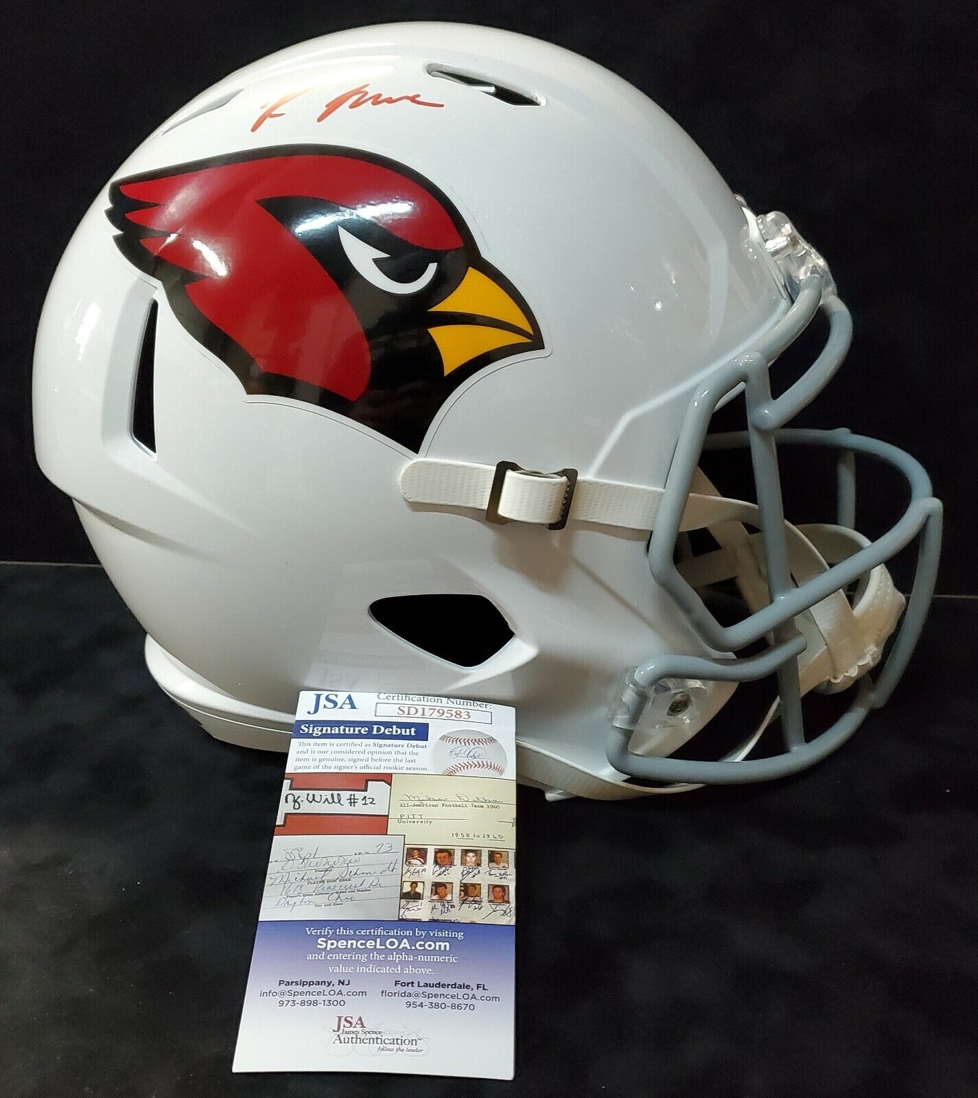 JSA Hologram and COA - Stock Photo used, helmet shipped will be similar quality and signature location