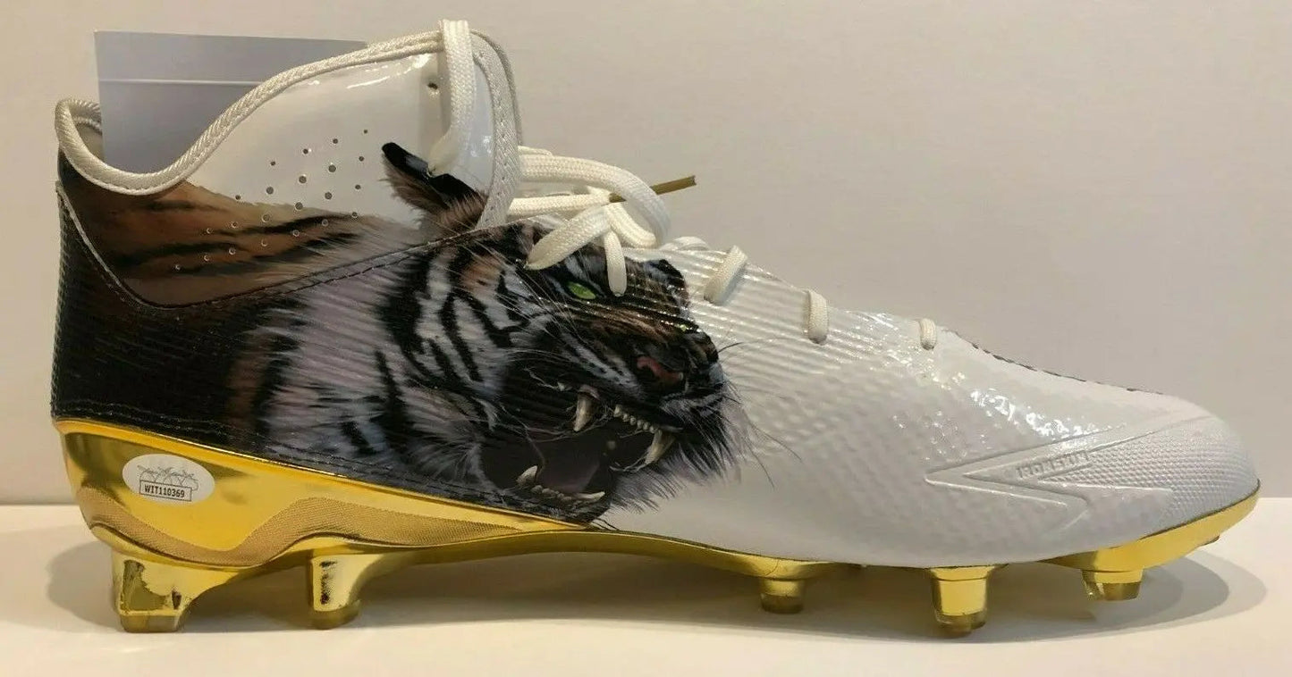 Darius Slayton signed inscribed "TRACK EM TIGERS" Adidas Cleat.