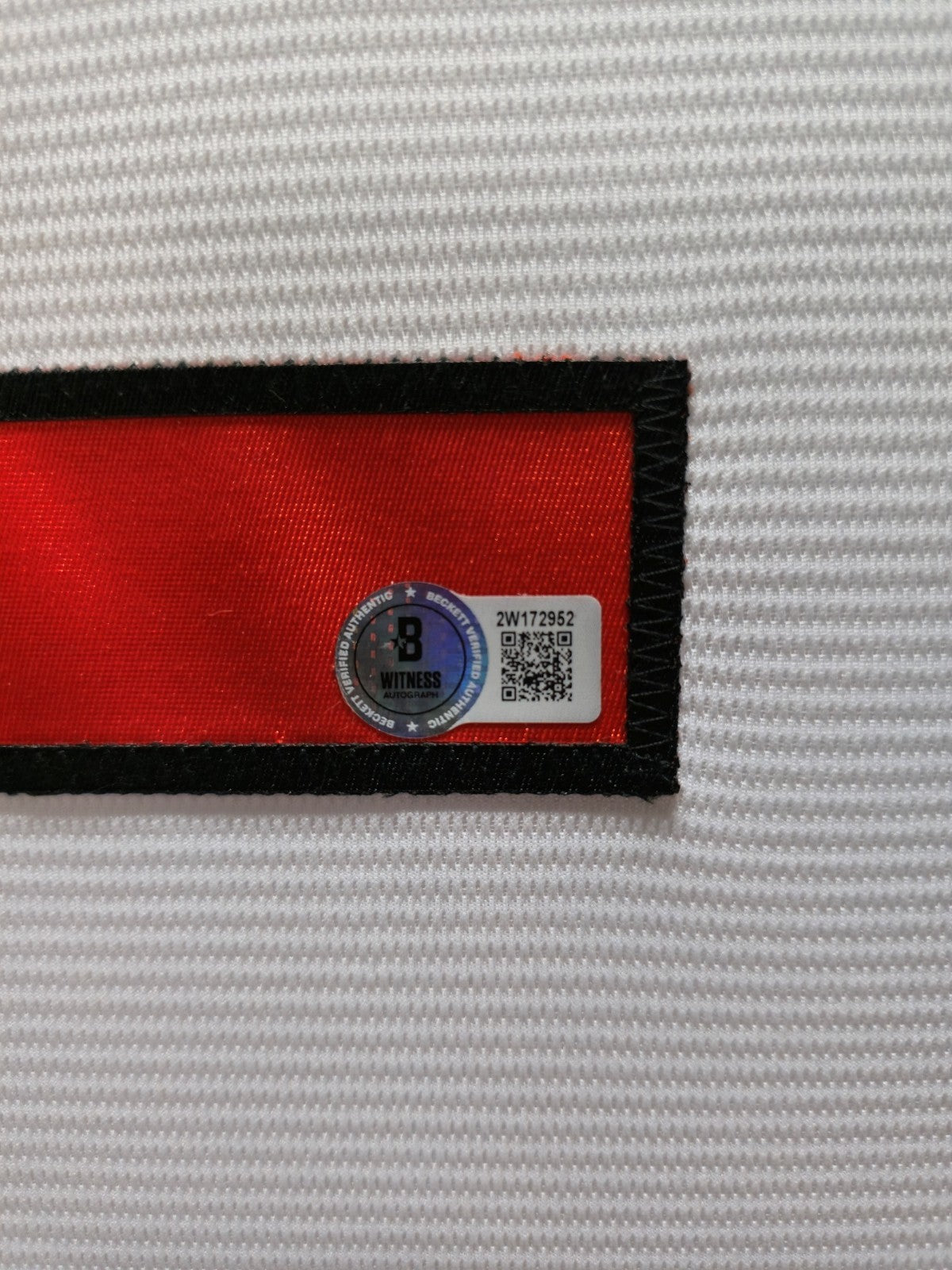The authentication is from Beckett. This signature is witness authenticated by a representative of Beckett. 100% AUTHENTIC. The jersey has fully stitched numbers on the front and back. It is a great item and a must for all great sports fans!