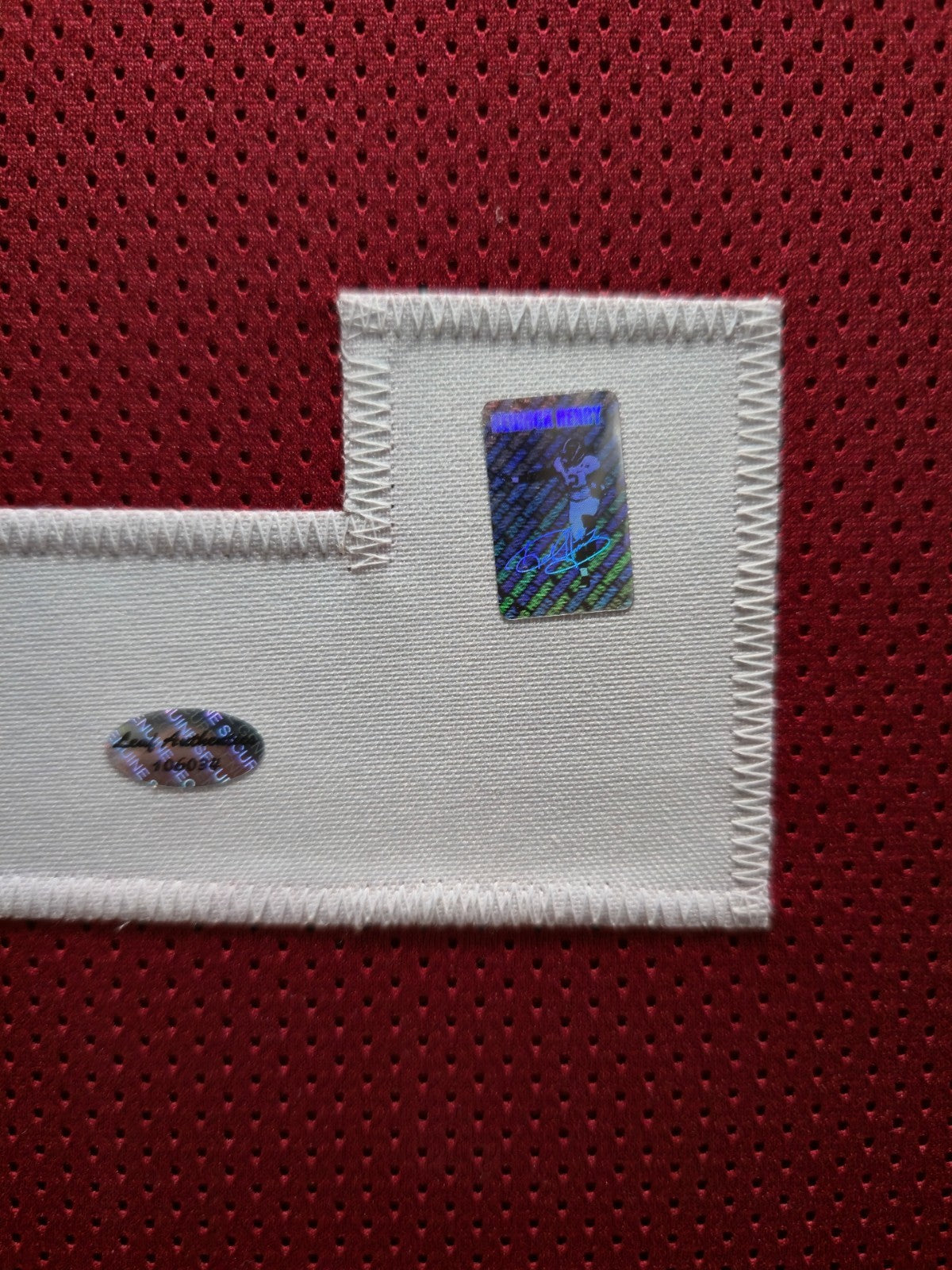 The authentication is from Leaf. This signature is WITNESSED by a representative of Leaf! 100% AUTHENTIC!!! The jersey has fully stitched numbers on the front and back. It is a great item and a must for all great sports fans!