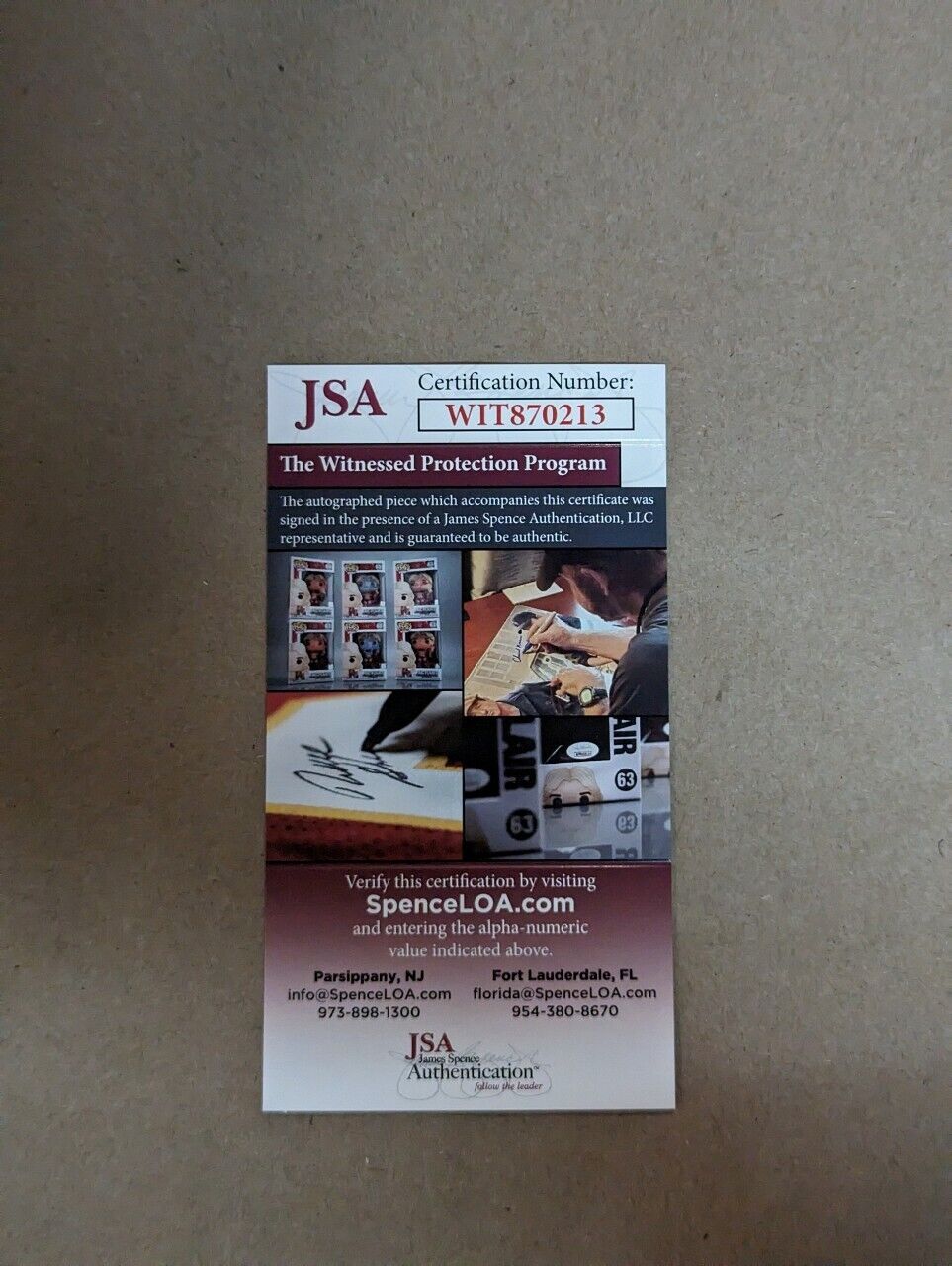 The authentication is from JSA. This signature is authenticated by a representative of JSA! 100% AUTHENTIC!!! The jersey has fully stitched numbers on the front and back. It is a great item and a must for all great sports fans!