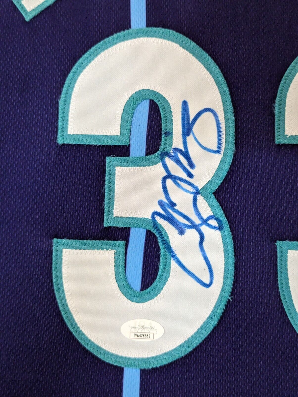 Framed Charlotte Hornets Alonzo Mourning Signed Jersey Jsa Coa