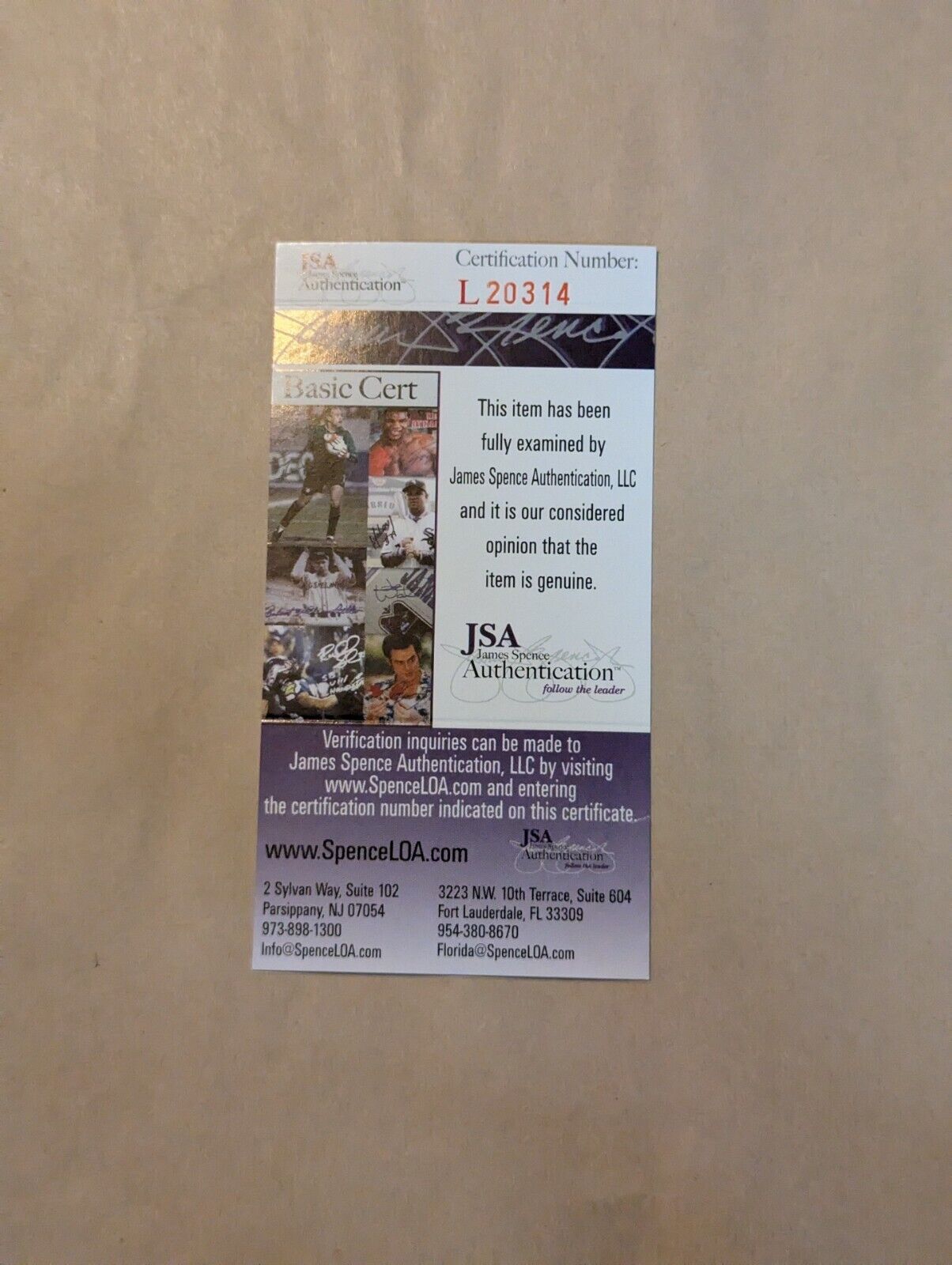 The authentication is from JSA. This signature is authenticated by a representative of JSA! 100% AUTHENTIC!!! The jersey has fully stitched numbers on the front and back. It is a great item and a must for all great sports fans!