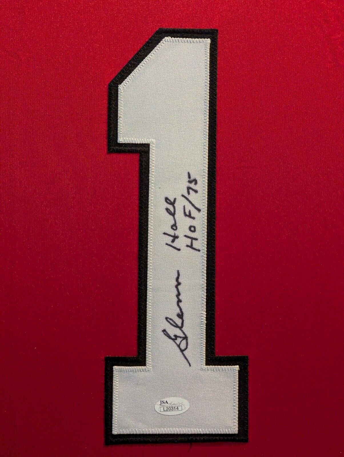 Framed Chicago Blackhawks Glenn Hall Autographed Inscribed Jersey Jsa Coa