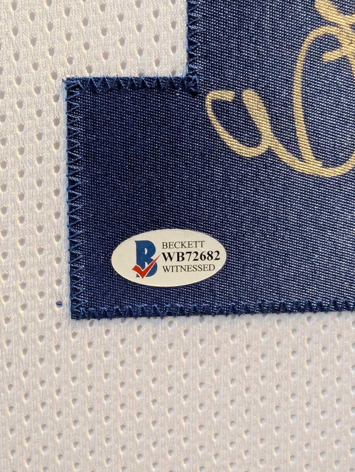 The authentication is from Beckett. This signature is authenticated by a representative of Beckett! 100% AUTHENTIC!!! The jersey has fully stitched numbers on the front and back. No tags or logos. This is not an official NFL jersey but it is very high quality. It is a great item and a must for all great sports fans!