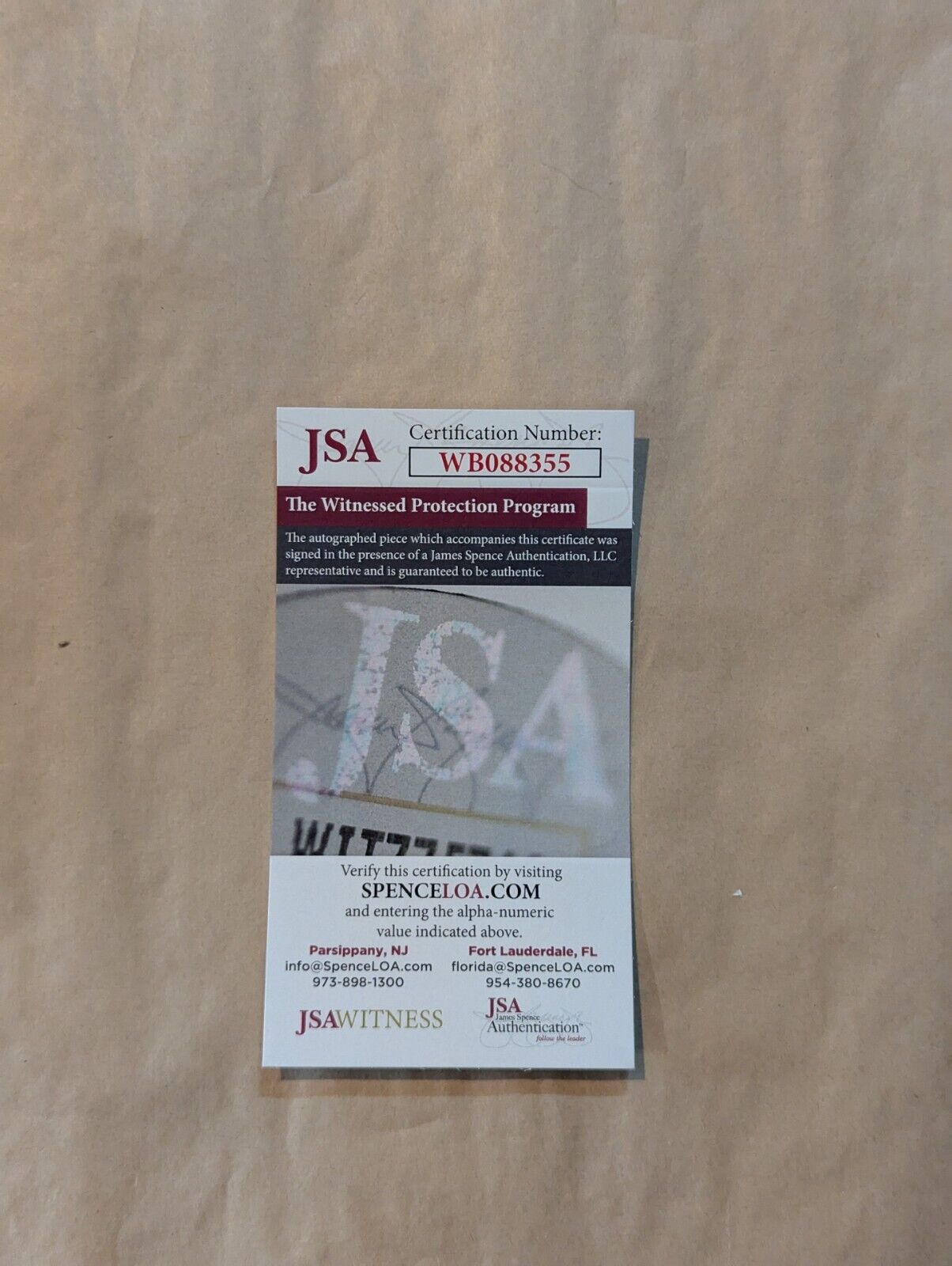 The authentication is from JSA. This signature is authenticated by a representative of JSA! 100% AUTHENTIC!!! The jersey has fully stitched numbers on the front and back. No tags or logos. This is not an official NFL jersey but it is very high quality. It is a great item and a must for all great sports fans!