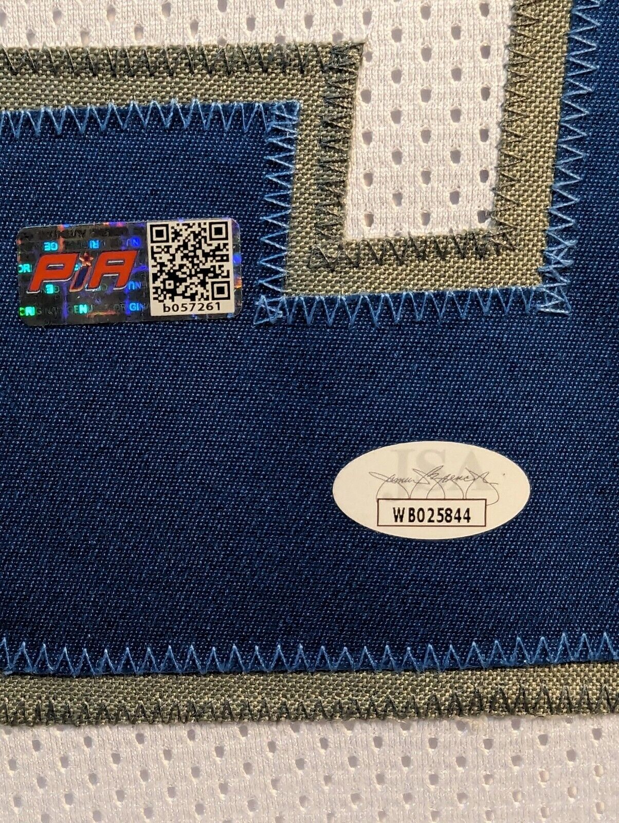 The authentication is from JSA. This signature is authenticated by a representative of JSA! 100% AUTHENTIC!!! The jersey has fully stitched numbers on the front and back. It is a great item and a must for all great sports fans!