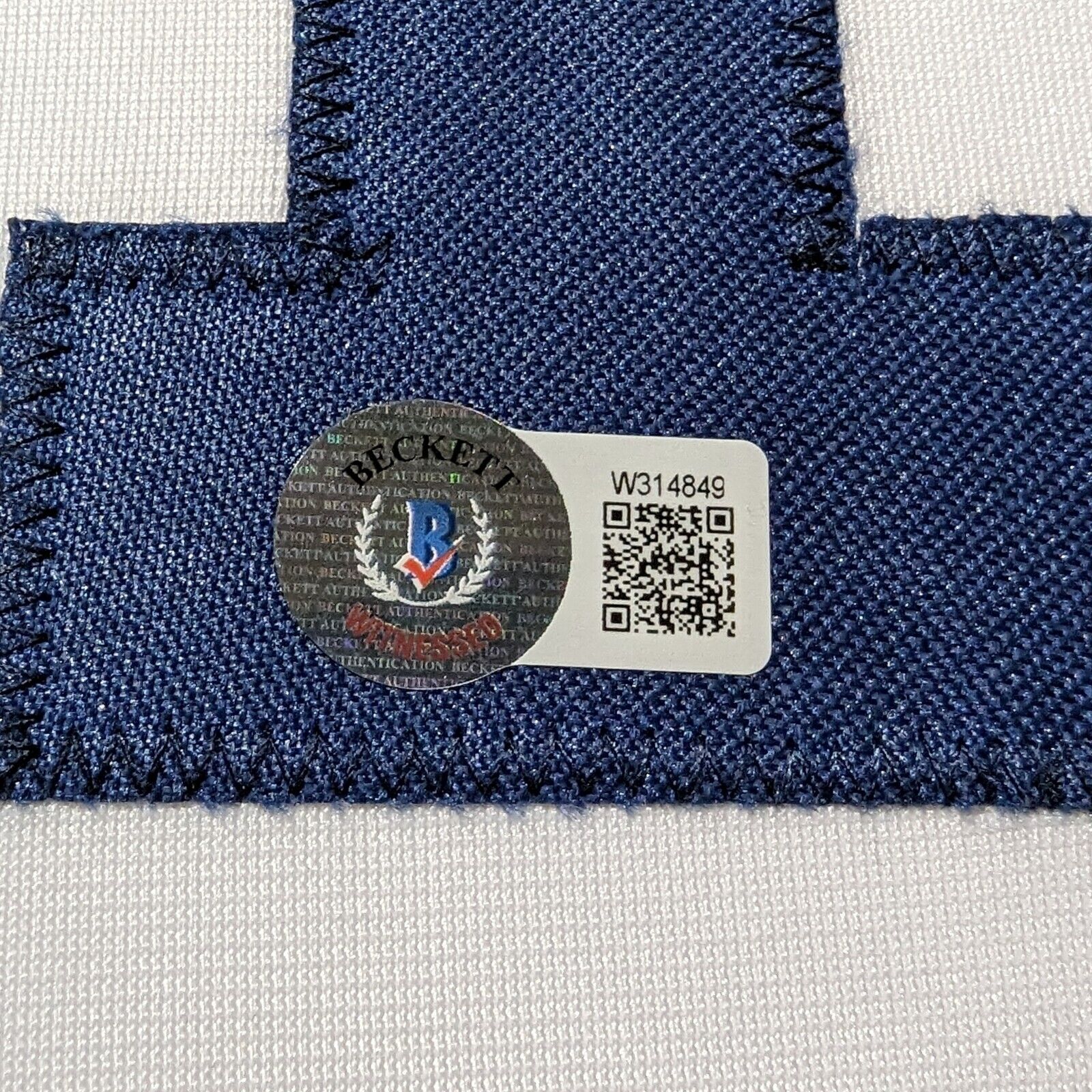 The authentication is from Beckett. This signature is WITNESSED by a representative of Beckett! 100% AUTHENTIC!!! The jersey has fully stitched numbers on the front and back. It is a great item and a must for all great sports fans!