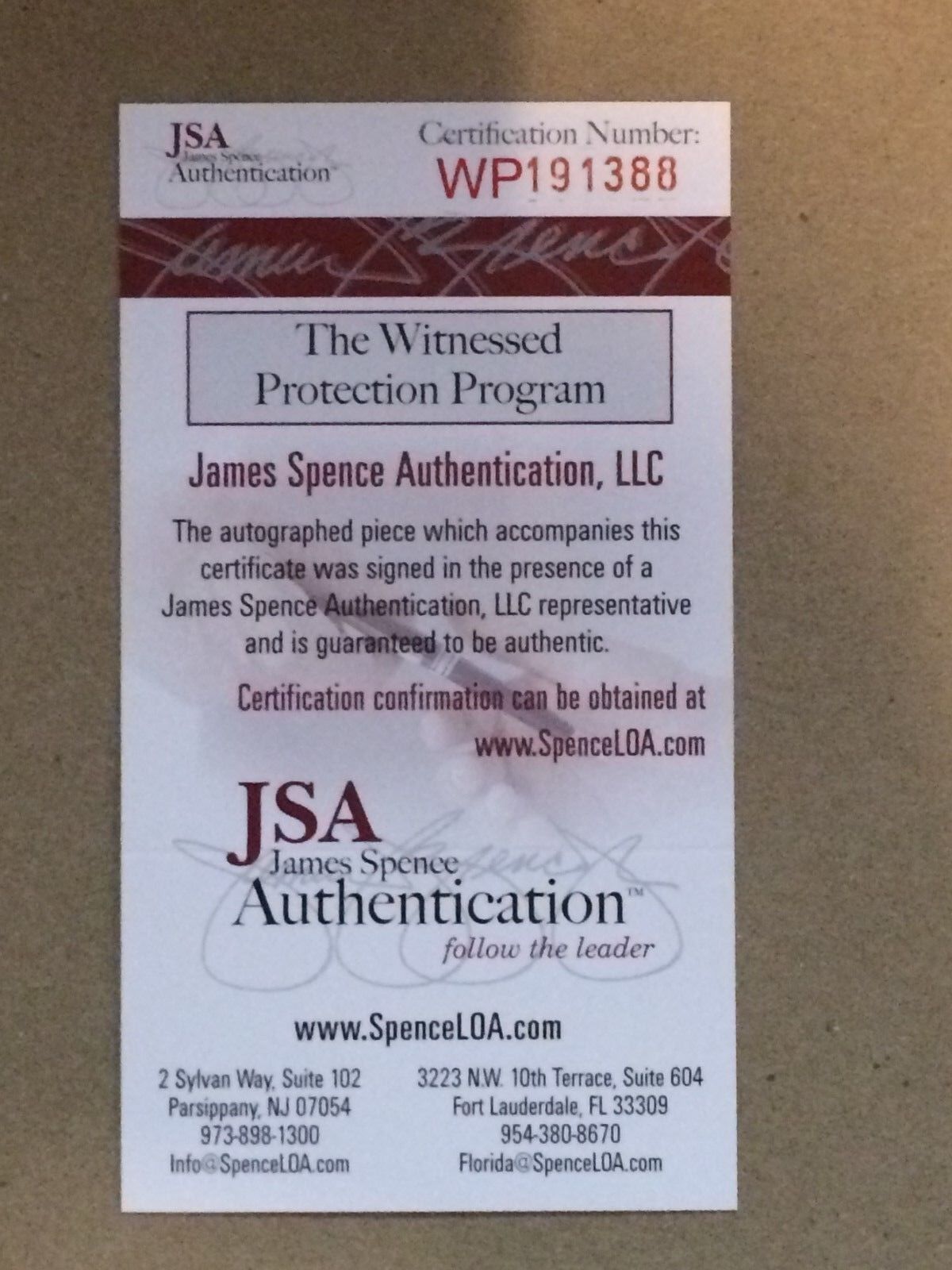 JSA Hologram and COA(#WP191388)