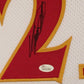 The authentication is from JSA. This signature is not authenticated by opinion but it is WITNESSED by a representative of JSA! 100% AUTHENTIC!!! The jersey has fully stitched numbers on the front and back. It is a great item and a must for all great sports fans!