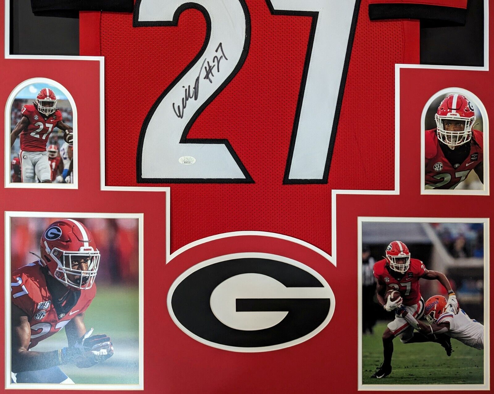 Framed Eric Stokes Jr hand signed Georgia Bulldogs style custom jersey.