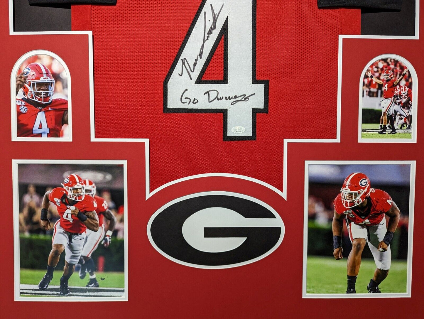 Framed Nolan Smith Jr hand signed Georgia Bulldogs style custom jersey.