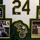 This item is professionally framed, it measures 32”x40” inside , 42”x34” outside , using UV protective Acrylic glass for safe keeping and safe transport, SUEDE team color matting, black moulding and hanging hooks on the back. All additional items in frame seen in pictures included. 100% ready to hang in your fan cave.