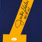 Custom Framed Jackie Slater hand signed inscribed "HOF 01" L.A. Rams custom jersey.