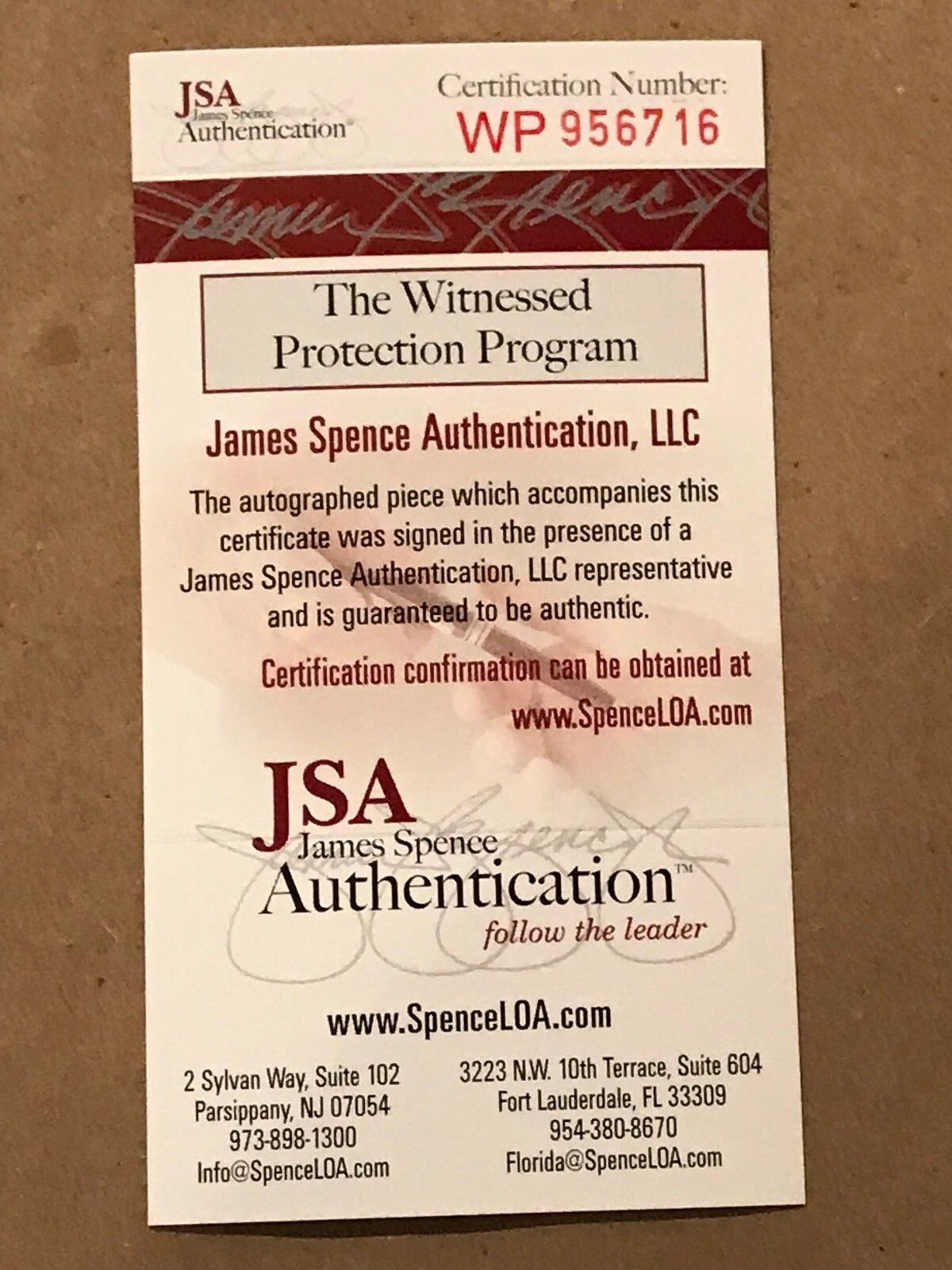 JSA Hologram and COA(#WP956716)