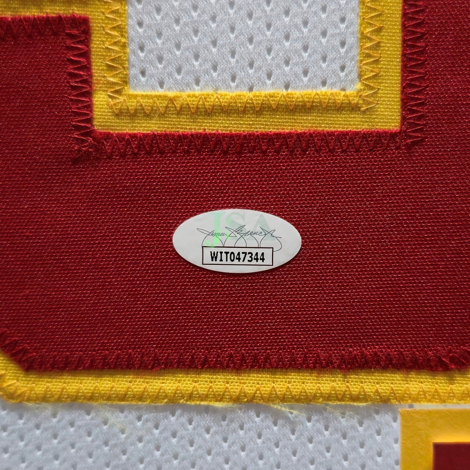 The authentication is from JSA. This signature is WITNESSED by a representative of JSA! 100% AUTHENTIC!!! The jersey has fully stitched numbers on the front and back. It is a great item and a must for all great sports fans!