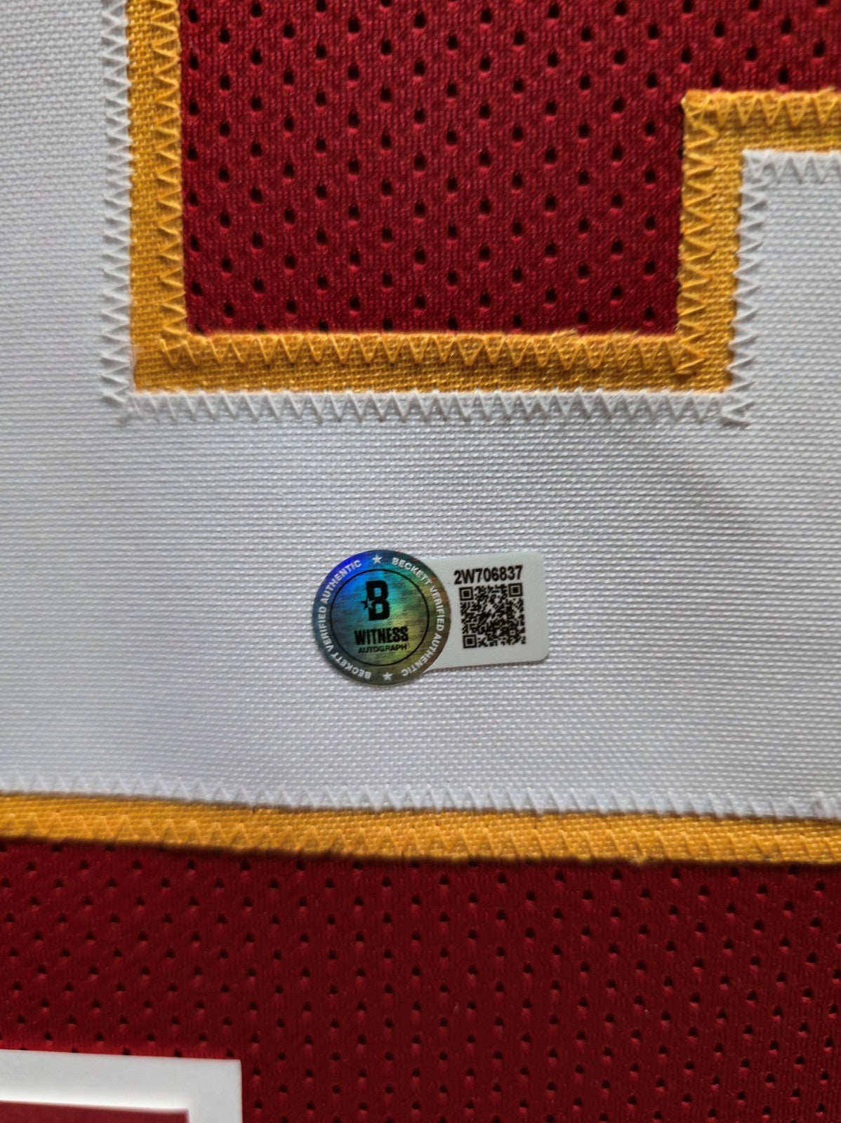 The authentication is from Beckett. This signature is WITNESSED by a representative of Beckett! 100% AUTHENTIC!!! The jersey has fully stitched numbers on the front and back. It is a great item and a must for all great sports fans!