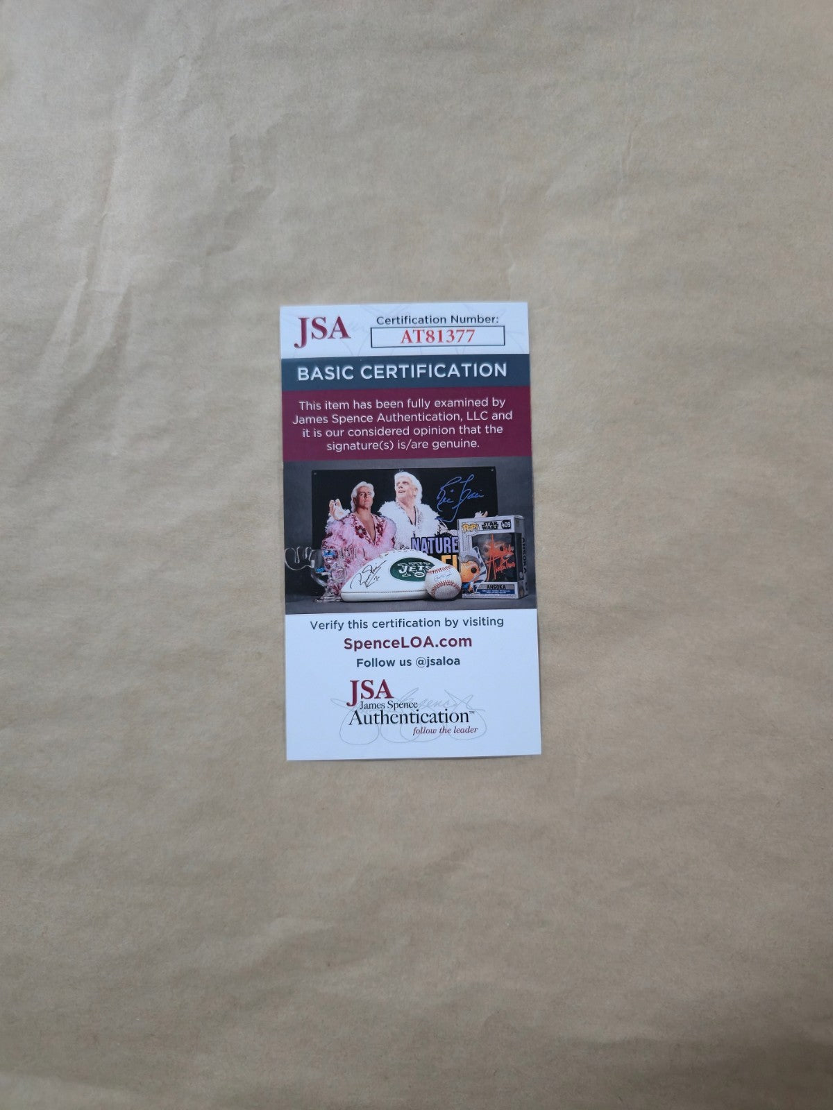 The authentication is from JSA. This signature is not authenticated by opinion but it is WITNESSED by a representative of JSA! 100% AUTHENTIC!!! The jersey has fully stitched numbers on the front and back. It is a great item and a must for all great sports fans!