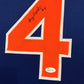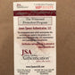 The authentication is from JSA. This signature is not authenticated by opinion but it is WITNESSED by a representative of JSA! 100% AUTHENTIC!!! The jersey has fully stitched numbers on the front and back. It is a great item and a must for all great sports fans!