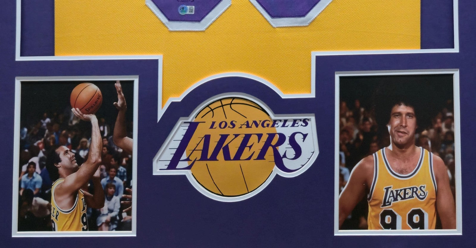 Custom Framed Chevy Chase hand signed Los Angeles Lakers "99" Fletch custom jersey.