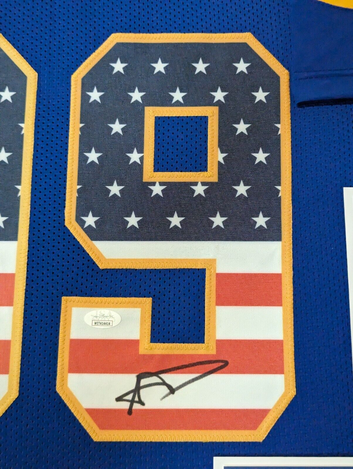 The authentication is from JSA. This signature is authenticated by a representative of JSA! 100% AUTHENTIC!!! The jersey has fully stitched numbers on the front and back. No tags or logos. This is not an official NFL jersey but it is very high quality. It is a great item and a must for all great sports fans!