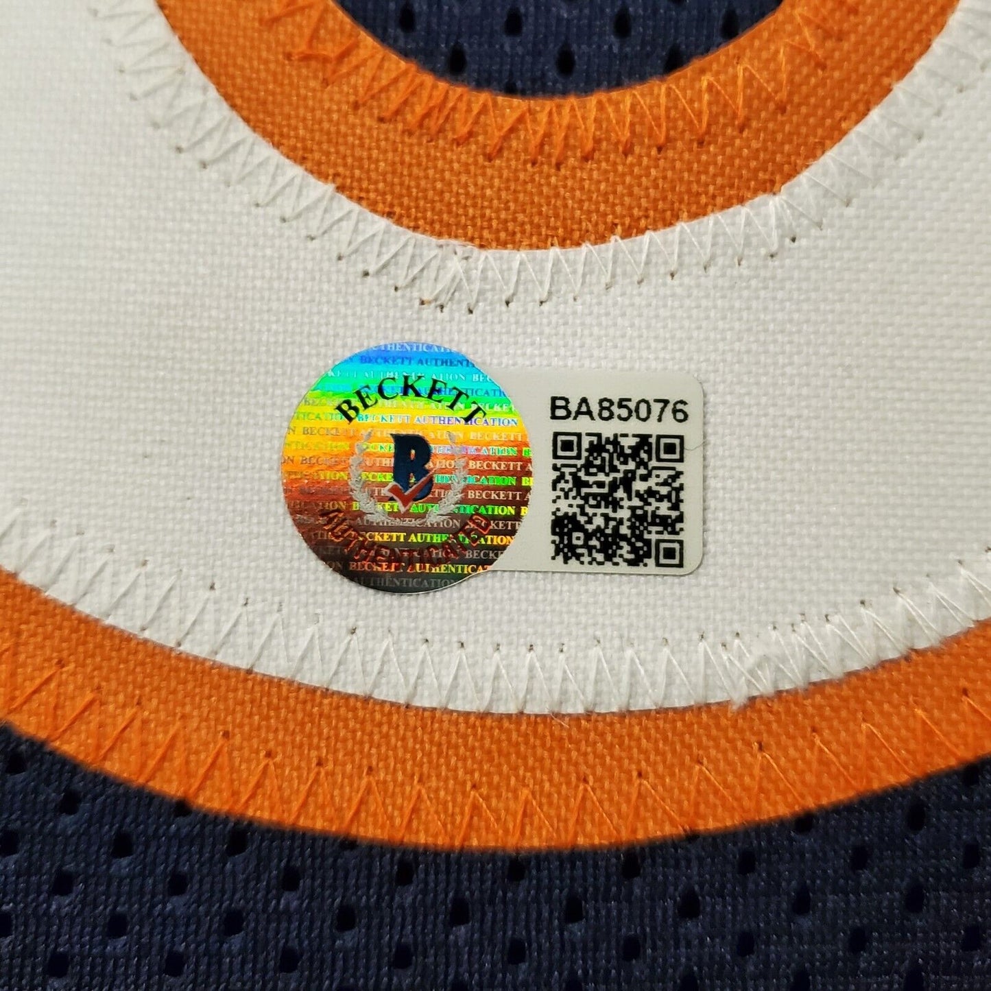 The authentication is from BAS. This signature is not authenticated by opinion but it is WITNESSED by a representative of BAS! 100% AUTHENTIC!!! The jersey has fully stitched numbers on the front and back. It is a great item and a must for all great sports fans!