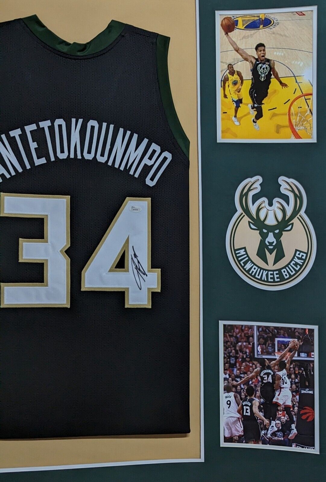 Custom Framed Giannis Antetokounmpo hand signed Milwaukee Bucks style custom jersey