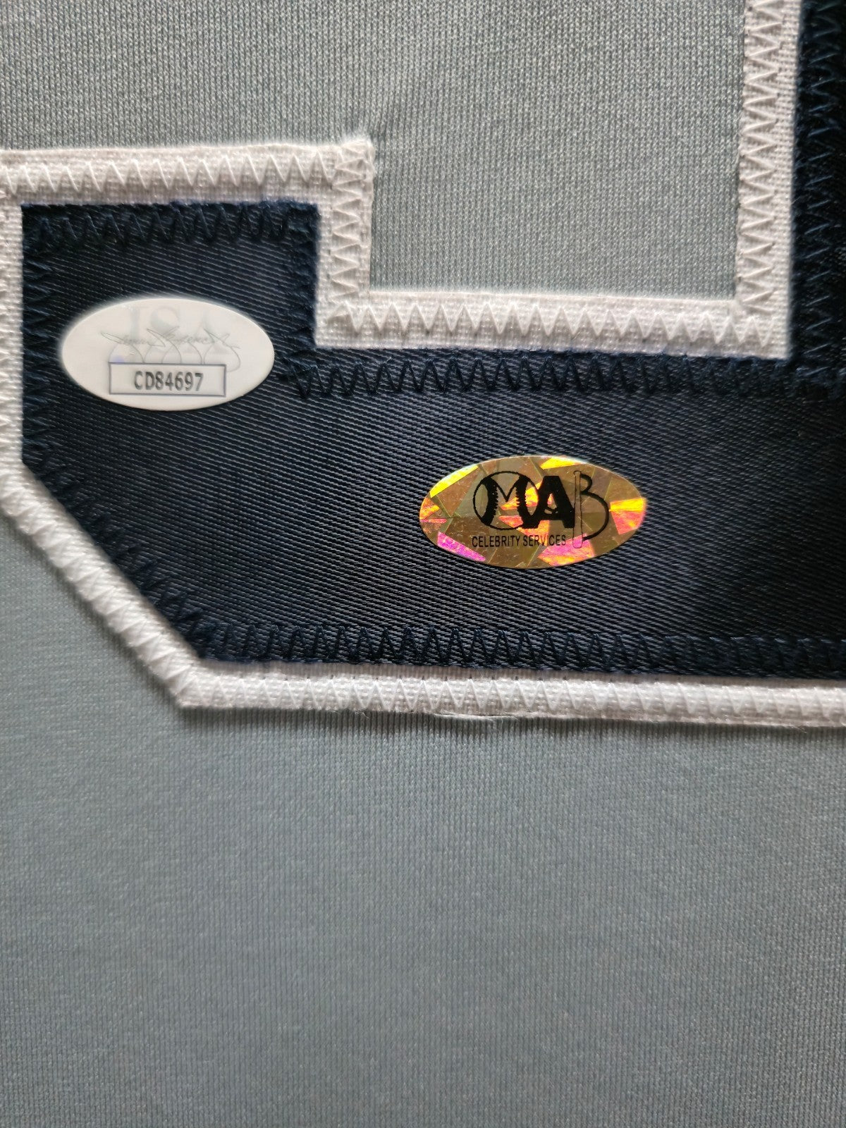 The authentication is from JSA. This signature is WITNESSED by a representative of JSA! 100% AUTHENTIC!!! The jersey has fully stitched numbers on the front and back. It is a great item and a must for all great sports fans!