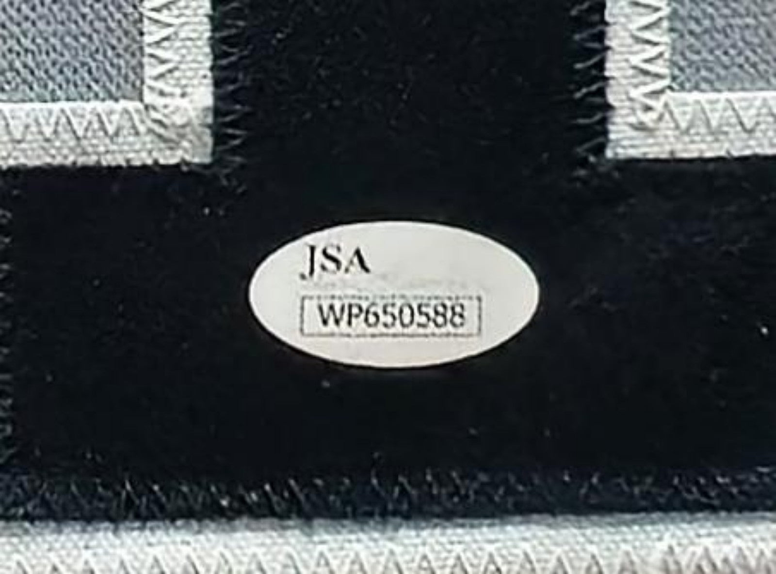 The authentication is from JSA. This signature is WITNESSED by a representative of JSA! 100% AUTHENTIC!!! The jersey has fully stitched numbers on the front and back. It is a great item and a must for all great sports fans!