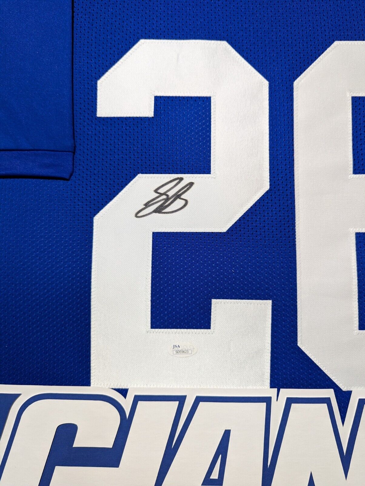 Framed New York Giants Saquon Barkley Autographed Jersey Jsa Coa