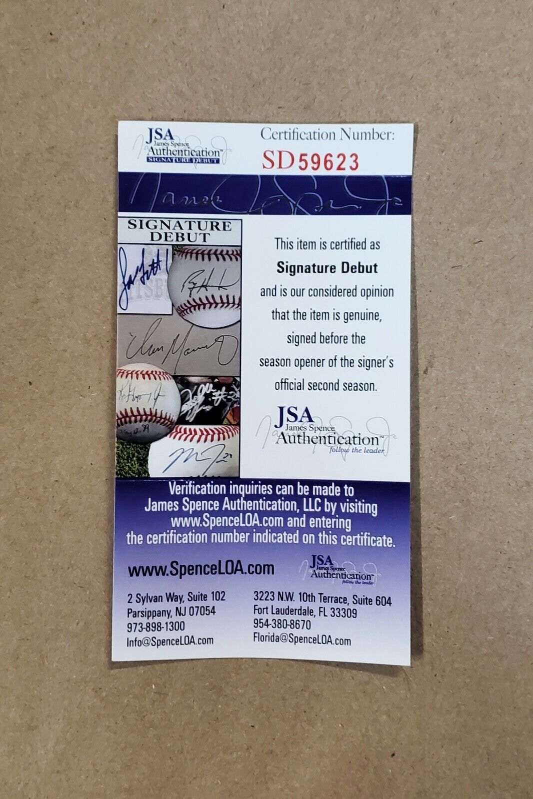 The authentication is from JSA. This signature is authenticated by a representative of JSA! 100% AUTHENTIC!!!   The jersey has fully stitched numbers on the front and back.  It is a great item and a must for all great sports fans!