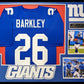 Custom Framed Saquon Barkley hand signed New York Giants style custom jersey.